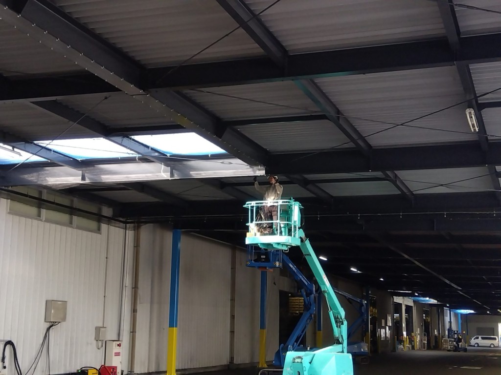 福岡県の企業様にで倉庫内防鳥ネット設置工事を行いました。
