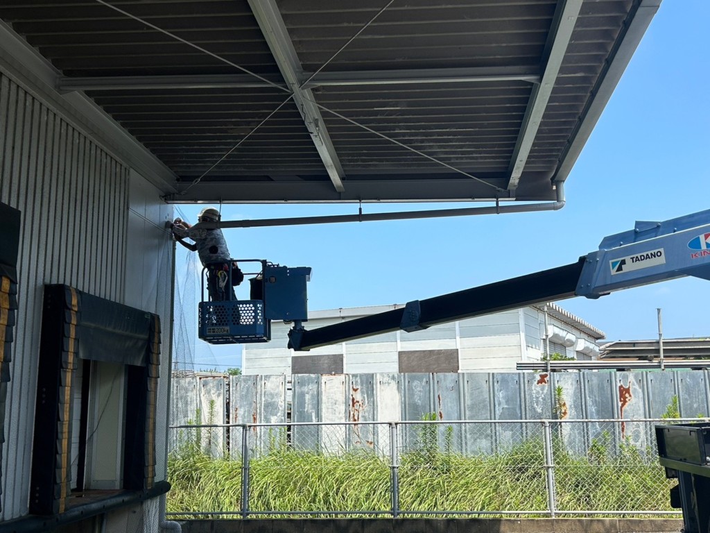 福岡県の企業様にて倉庫防鳥ネット設置工事を行いました。